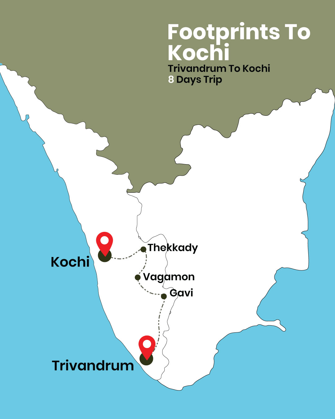 Embark on an unforgettable 8-day trekking journey from Trivandrum to Kochi, tracing hidden trails through Kerala’s forests, ridgelines, pilgrim paths, and plantation valleys. This immersive adventure takes you through lush tea hills, sacred pilgrim trails, wildlife sanctuaries, misty meadows, and tribal hamlets—offering a soul-stirring blend of nature, culture, and spiritual landscapes. Ideal for trekkers, eco-travelers, and seekers of the unexplored.